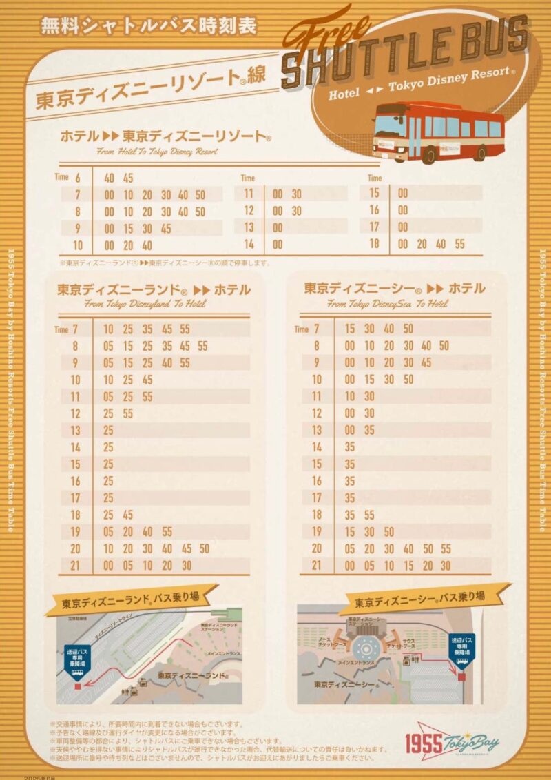 ディズニーランド、ディズニーシー、新浦安駅から無料のシャトルバスが走っています。