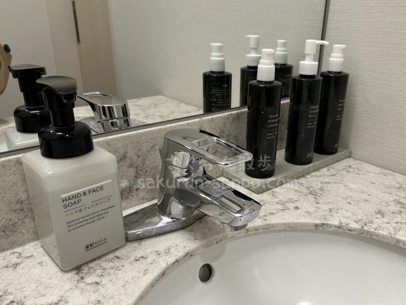 一通りそろってるので手ぶらでもOKですが、洗顔がハンドソープと兼用、メイク落としはミルクタイプ(水濡れNG)なので、オイル等別途必要な方は持参することをオススメします。