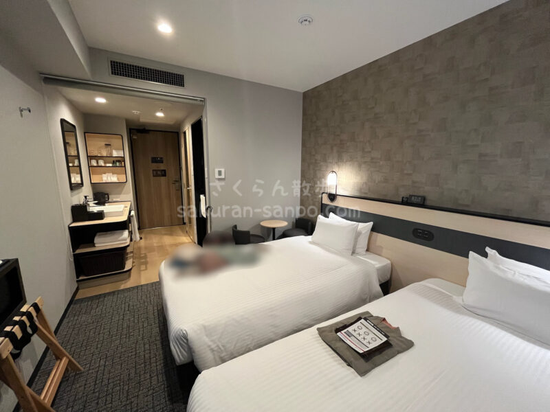 「ホテルエルシエント大阪梅田」モデレートツイン部屋の様子・アメニティの種類