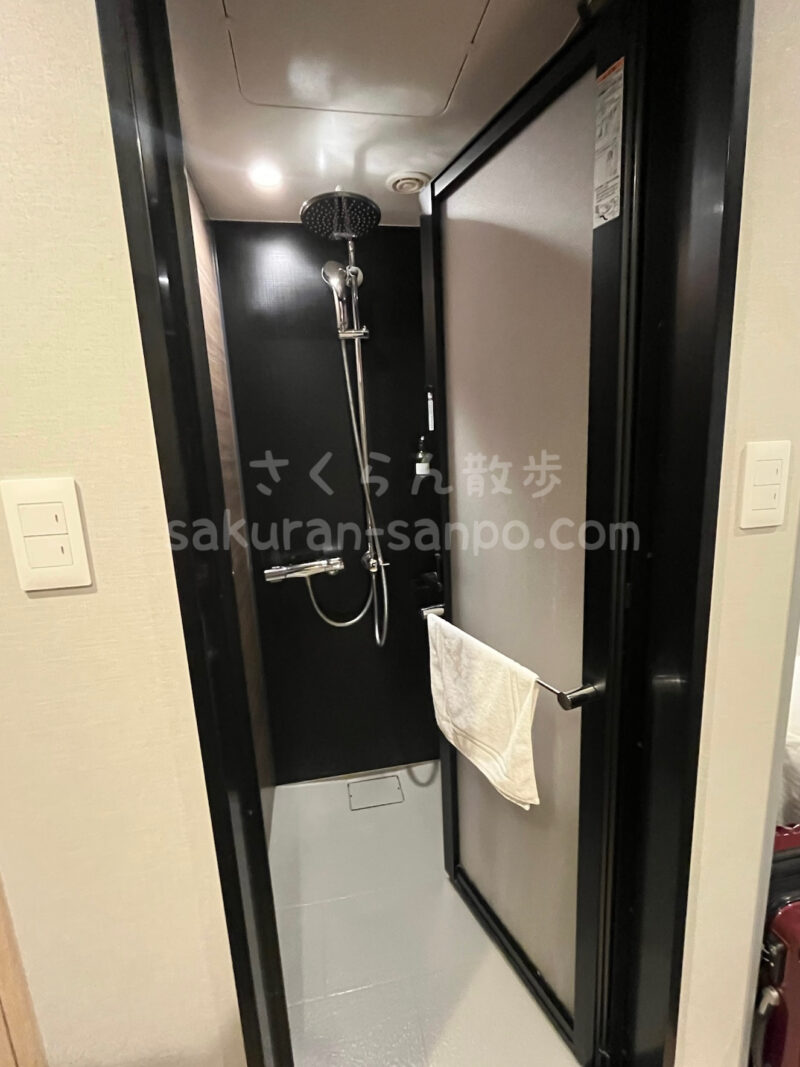 洗面台の向かい側に、トイレとシャワールームがあります。