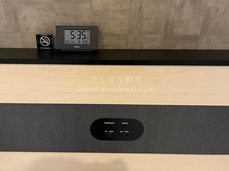 ベイサイドにはコンセントやUSB、時計。