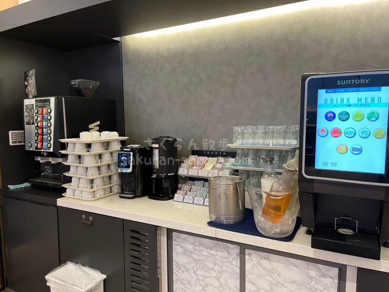 今回タイミングが合わずティータイムに行けませんでしたが、コーヒーや紅茶、ソフトドリンクなどのドリンク、ドーナツ。カクテルタイム以降はアルコールも無料で頂けるそうです(宿泊者に限り)