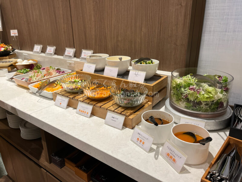 エルシエント大阪梅田の朝食は、大阪名物をはじめ、手作りのデパ地下風彩りサラダや自家製の日替わり惣菜、10種のパン、栄養満点のスムージーなどをビュッフェスタイルで頂けます。